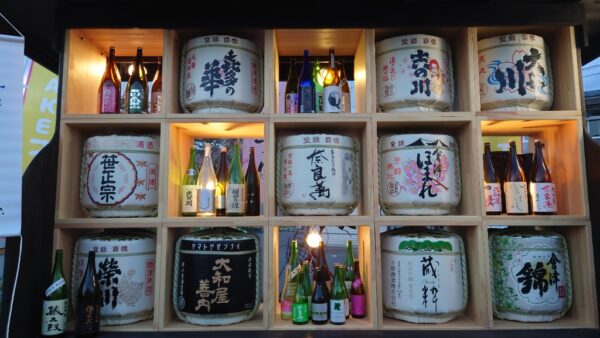 花見酒5杯で1000円チケットか、17時〜19時の日本酒飲み放題3000円コースがあり、参加者には酒粕ビスコッティとこたまりせんべいのお通しが配られました。