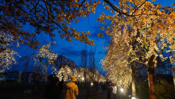 19時までの開催で、日中線しだれ桜もライトアップされ、絶好の花見酒でした♪